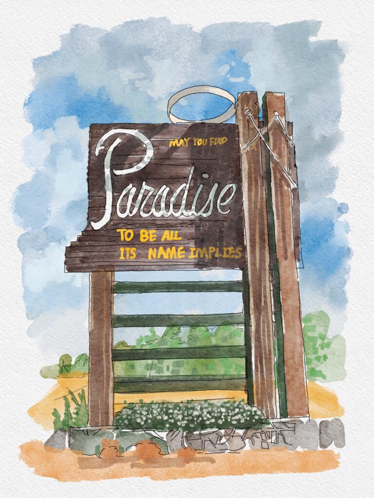 I grew up in the idyllic mountain town of Paradise, California, where my family’s home stood as a constant beacon of peace and warmth. Nestled between towering oaks and pines, it was a place filled with laughter, countless memories, and quite often Patsy Cline, Connie Francis or the Mamas and the Papas loudly playing on the mighty mid- century record player, my dad built by hand. I grew up steeped in nature and with a deep sense of family there. We’d pick the blackberries that grew on the side of the road, shove them in glass jars and then tromp over to the Holiday Market, where we’d inevitably bump into a friend or family member. You were never lacking for community in Paradise.